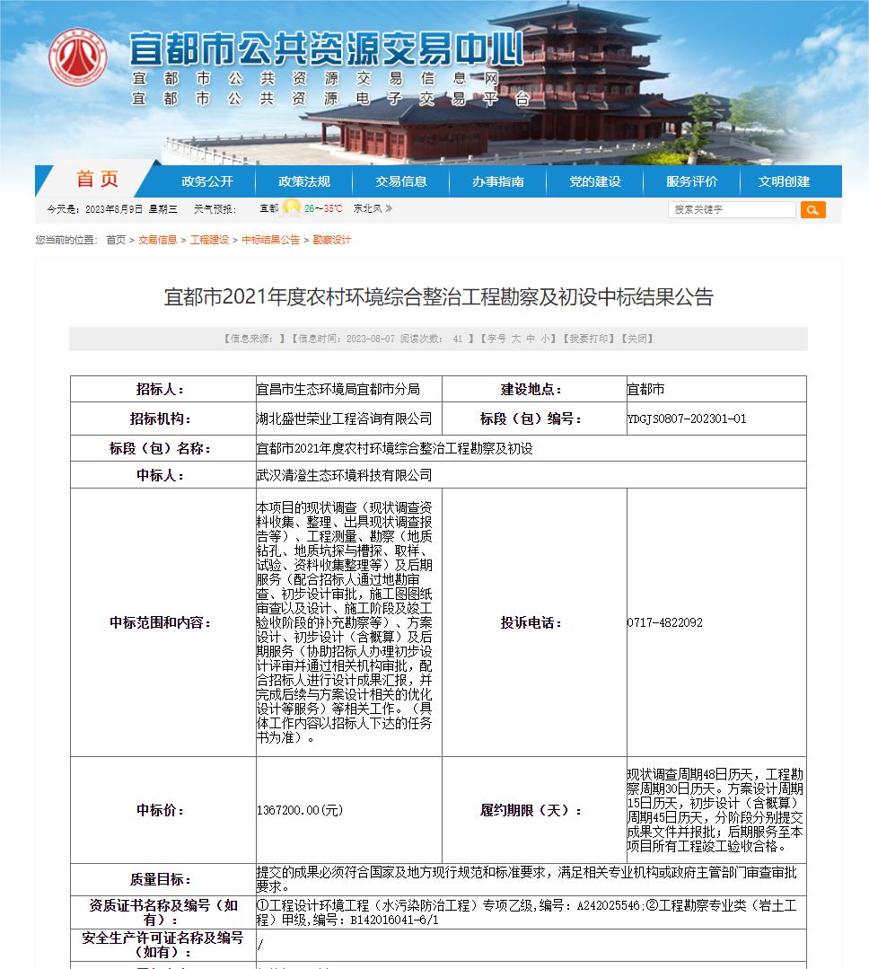 项目名称:宜都市2021年度农村环境综合整治工程勘察及初设