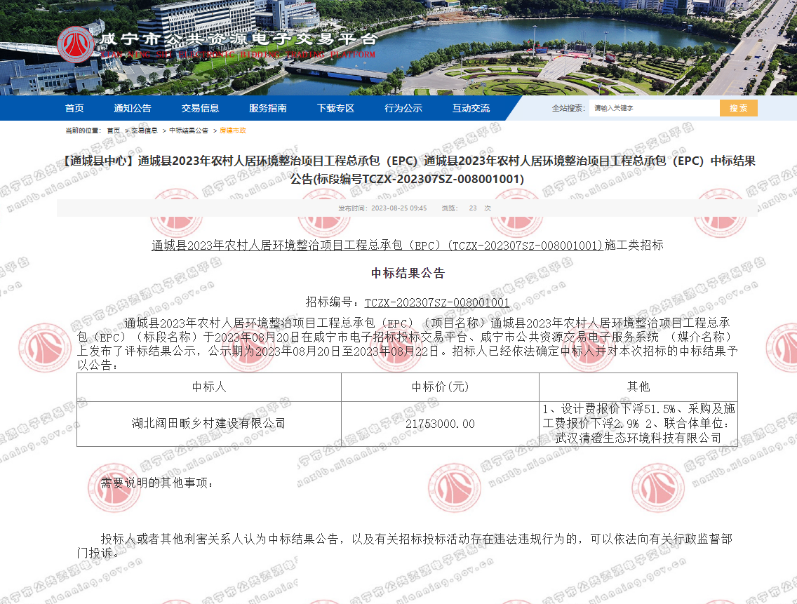 项目名称:通城县 2023 年农村人居环境整治项目工程总承包(EPC)