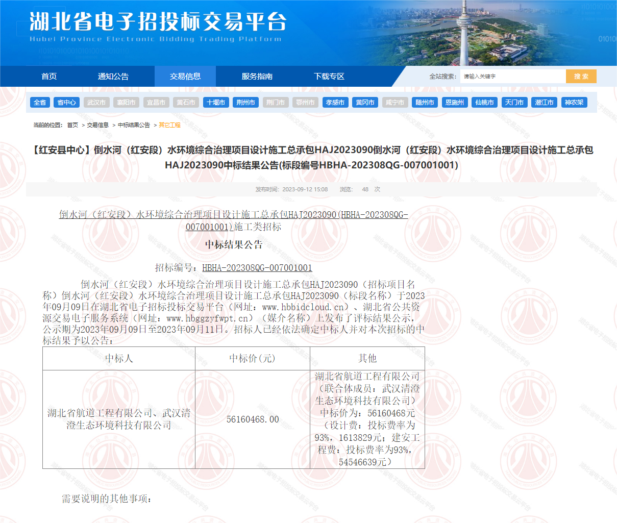 项目名称:倒水河(红安段)水环境综合治理项目设计施工总承包